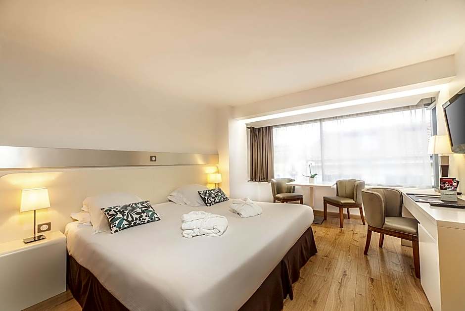After a day of exploring Cannes, guests can further unwind in the hotel's indoor heated pool, perfect for relaxation all year round. The pool is open to all ages, offering a tranquil retreat for families and couples alike. Complete with a spa tub and hot tub, guests can enjoy a pampering soak or bask in the sun on the inviting sun deck or terrace. The indoor pool area provides a serene setting for guests to rejuvenate and enjoy some leisure time during their stay.